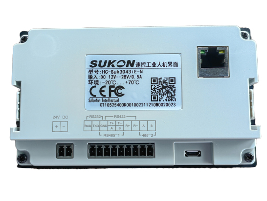 HC-SuK3043iE-N,速控4.3寸工业触摸屏,配有1组独立的串口和一路以太网接口。